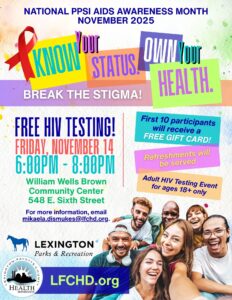 Join us for Know Your Status, Own Your Health, an adult HIV testing event for ages 18 and older